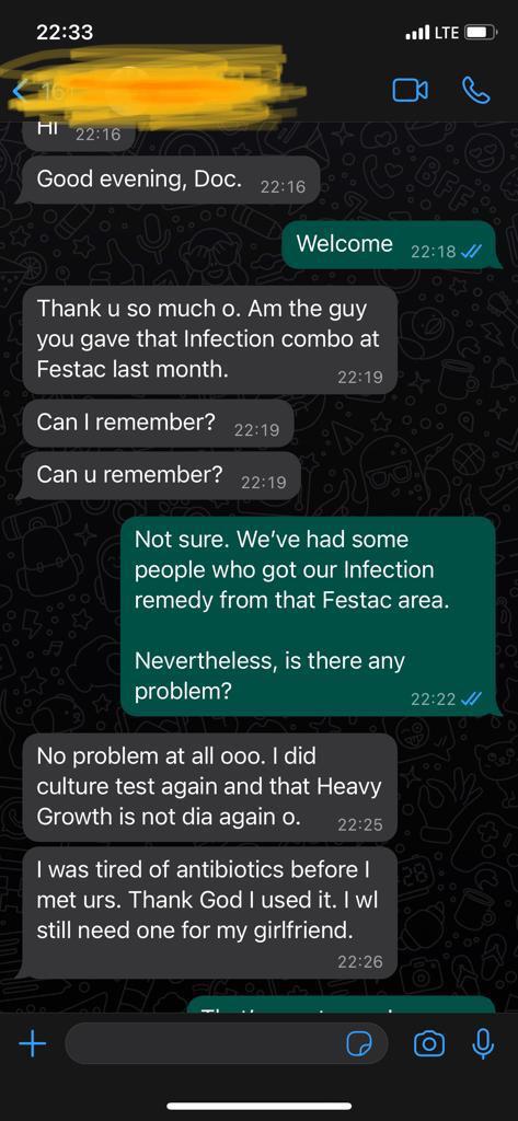 “I’ll give you something, a 2-in-1 Infection Combo, it’s a combination of a strong herbal cleanser, and an effective herbal powder that will wipe off the causative bacteria and viruses that bring about all these infections.